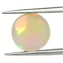 Product: Natural Opal, Shape: Round cabochon, Color: White Yellow, Size: 12.60 mm, Weight: 5.20 carats, Clarity: No visible inclusions, Treatment: Untreated, Iridescent: Very strong, Origin: Ethiopia