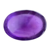Produit : Améthyste Naturelle, Couleur : Violet, Forme : Cabochon ovale, Taille : 9,70x7,90 mm, Poids : 3,40 carats, Clarté : Inclusions et fractures visibles, Traitement : Non traité, Origine : Zambie, Remarque : Légèrement ébréché.