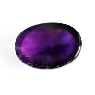 Produit : Améthyste Naturelle ; Forme : Cabochon ovale ; Couleur : Violet Foncé ; Taille : 17,60x12,70 mm ; Poids : 12,70 carats ; Clarté : Inclusions et fractures visibles ; Traitement : Non traité ; Origine : Zambie ; Remarque : Légèrement ébréché ;